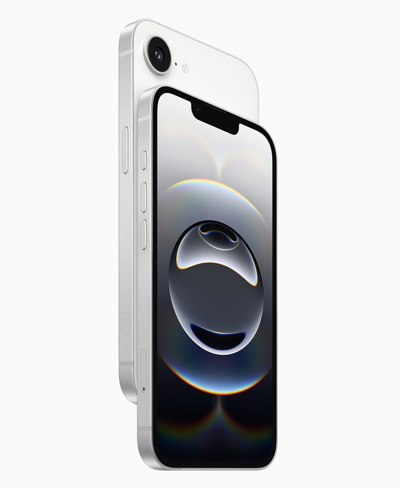노치 디자인, 페이스 아이디, 48MP 단일 카메라 렌즈, A18 칩셋, 애플 인텔리전스 지원, 액션 버튼 USB-C 포트 등이 특징이다.