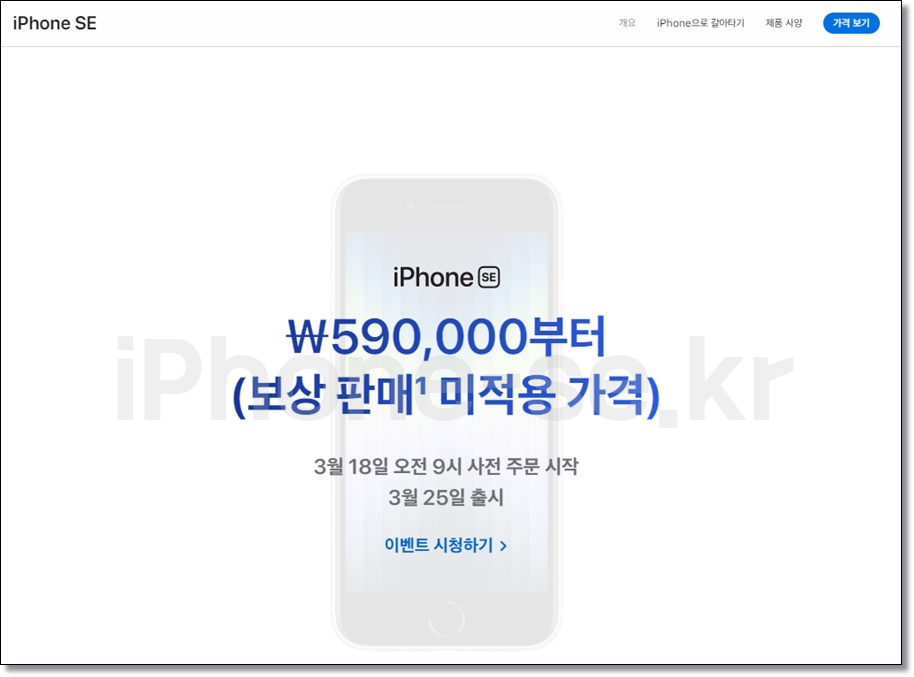 그러면 가장 궁금한 한국 사전예약은 언제일까? 새로운 아이폰 SE가 공개된 직후, 한국 애플 홈페이지에서는 이와 관련된 자세한 내용이 공개되었다!
